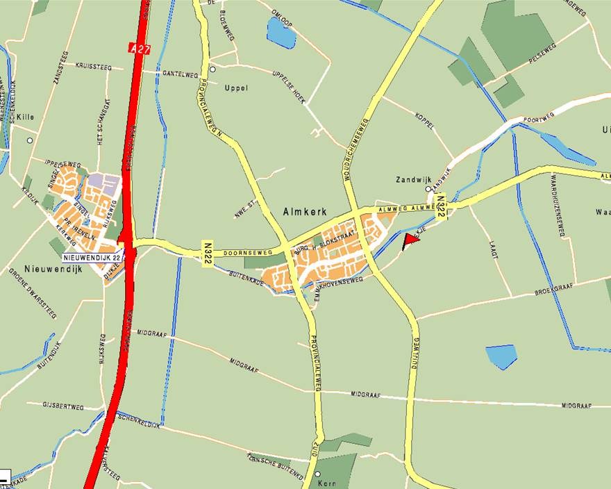 (Almkerk). Richting Almkerk, 2 rotondes rechtdoor, 2e weg rechts, eerste links